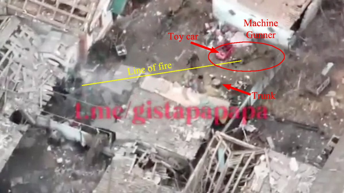 Я несколько раз смотрел в замедленном воспроизведении и позумил дальний угол двора - в упор никого не вижу никого, кроме пары бойцов слева от оператора. Смотрю со смартфона, правда.
