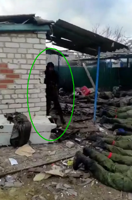 Суть в том, что сначала в Сети было опубликовано видео с телами уничтоженных оккупантов, после чего всплыло другое видео, на котором они еще живые по очереди выходили из дома. На этом ролике видно по разговору, что идет процесс сдачи в плен. Однако в конце видно, что последний оккупант, выходя из дома, открывает огонь, после чего слышатся звуки выстрелов и съемка прерывается.