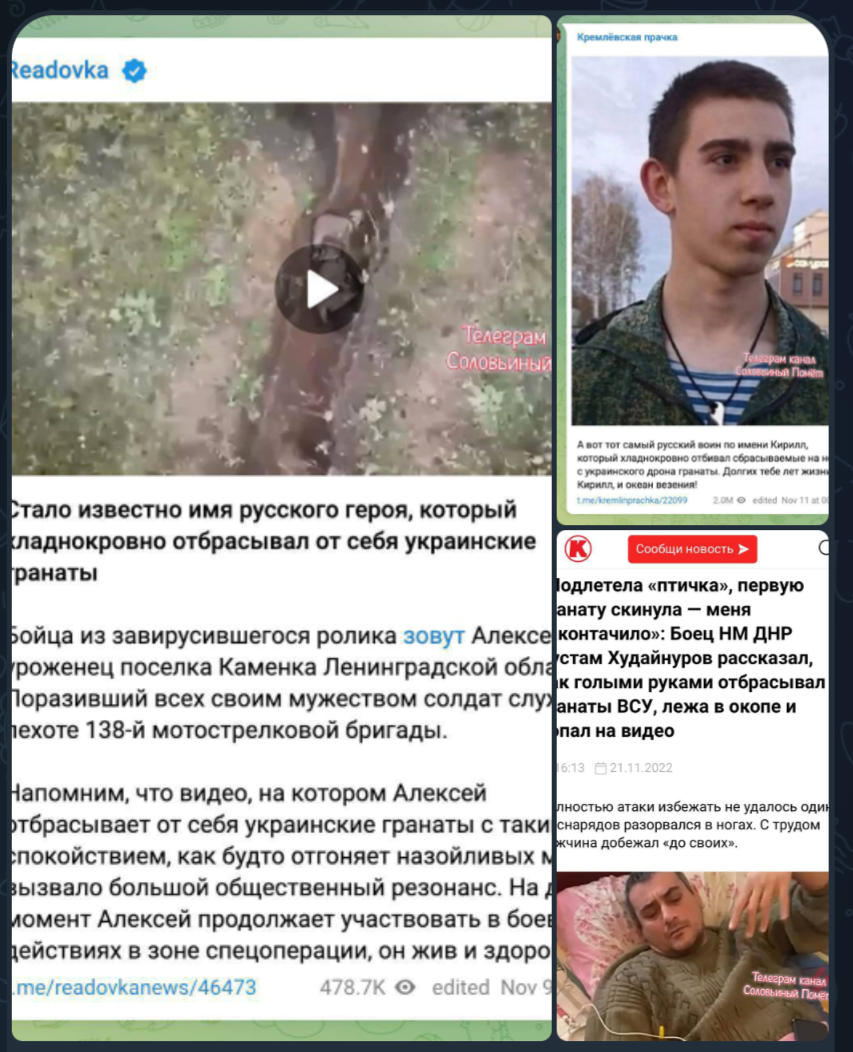 он хладнокровно отбрасывал гранаты, уже в трёх лицах нашли: Кирилл, Алексей и Рустам.