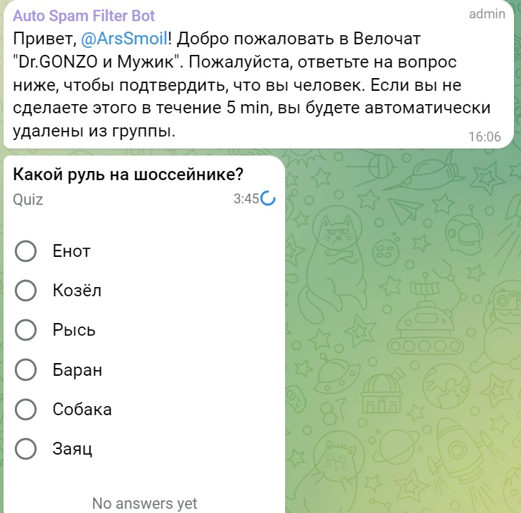 Я подал в Телеге жалобу: "мне не нравится что он пишет". Нет, это не мне писалось.