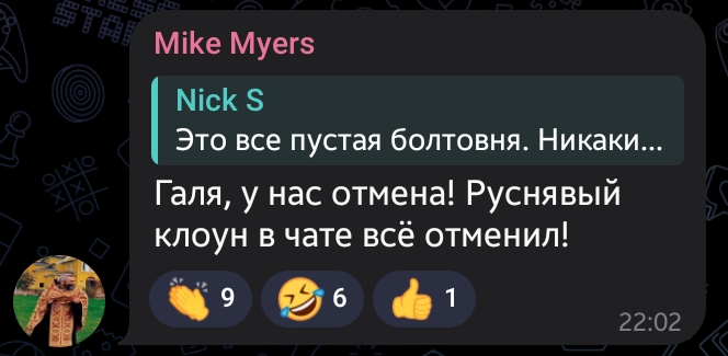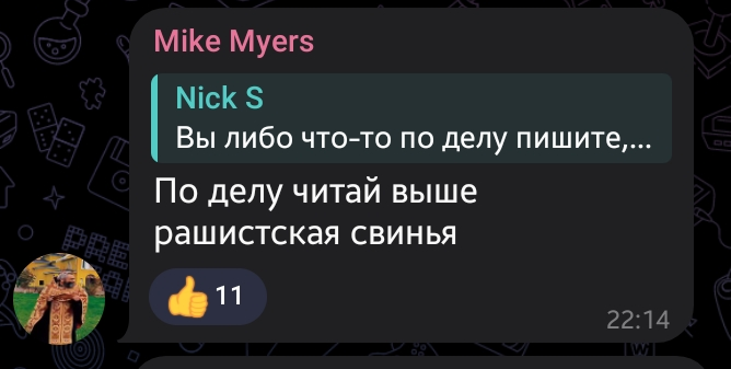 А в ТГ у Алекса полно таких персонажей. Им пишешь адекватный ответ, комментарий, свою точку зрения, а в свою сторону получаешь подобное. Увы.