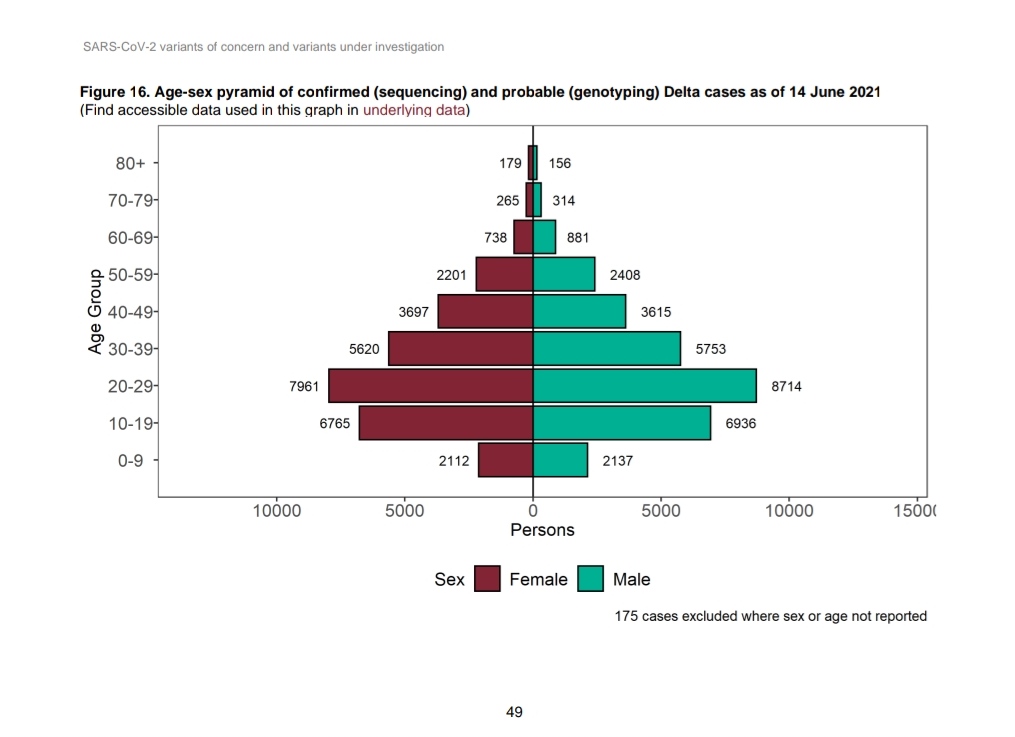 Сколько по возрастам привитых и непривитых, я не нашел, но общая разбивка есть. Среди инфицированных 18000 до 19 лет, из которых не привит никто. И ещё 17000 20-29 лет, из которых наверняка привито было меньшинство.