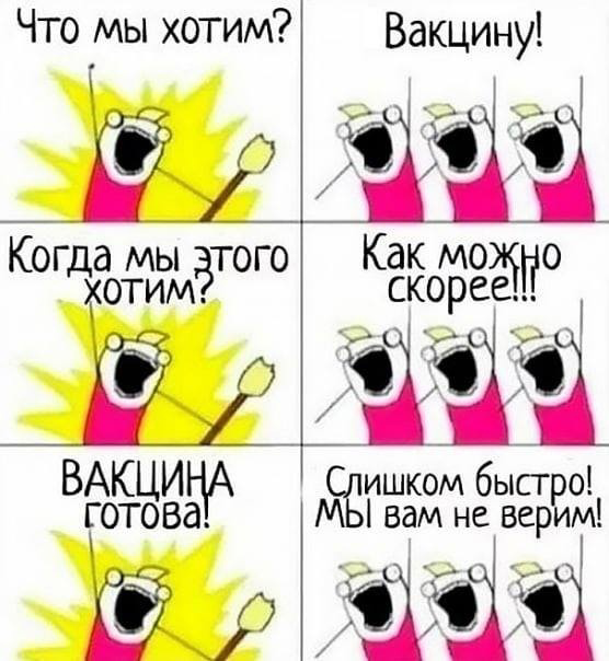 Сейчас уже заговорили о "ревакцинации". У меня вопрос к сторонникам прививки: каждые полгода будете теперь прививку делать? Или забьете? Думаю, второе. Вопрос в том, через сколько времени: год, два?
