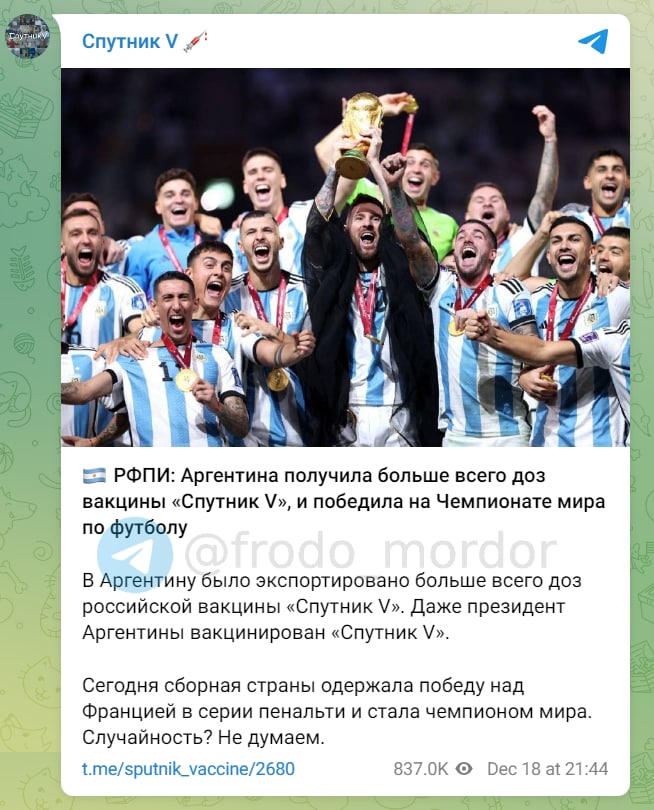Или мессадж в том, что Спутник - допинг, что-то типа мельдония и его следует запретить?