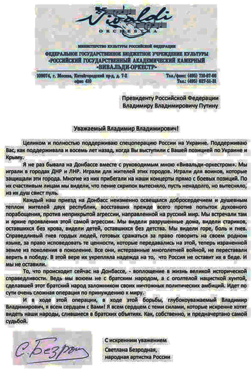 Какой мрак... Какая нафиг культура... Докатились до того, что представители культуры ради крох с барского стола стали продавать себя и, что более погано, своих подчинённых... И кстати, паршиво видеть на трамваях, в метро и на автобусах эти латинские буквы Z, выполненные в виде георгиевской ленты...