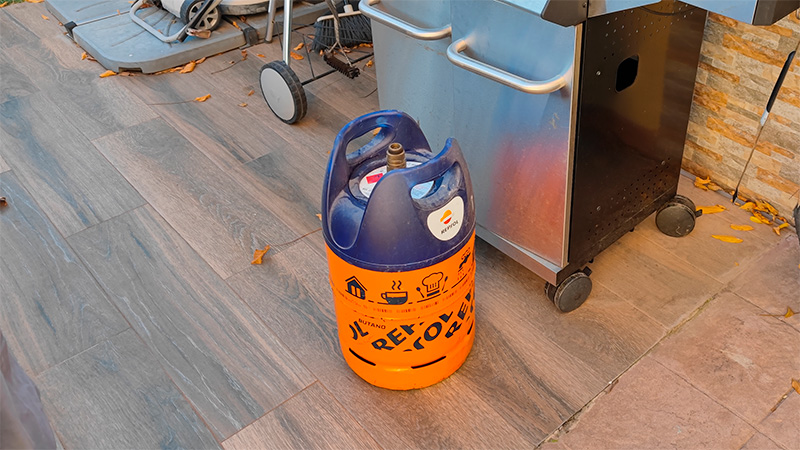 Ну и вот он, заправленный баллон. Курица счастливо пожарилась за 20 минут. Ура!