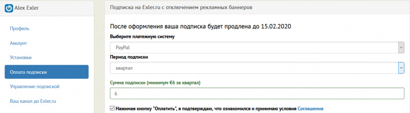 Ну и вот теперь мы наконец-то добавили возможность подписки через PayPal - это на порядок более универсальный способ. Единственное - нам пришлось сделать минимальный диапазон подписки - квартал (3 месяца), потому что минимальная стоимость подписки у нас очень низкая, а PayPal берет довольно большую комиссию за разовое периодическое снятие.