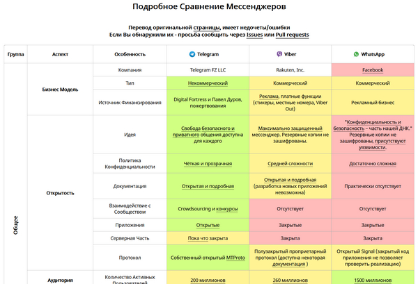 Табличка лживая и вся инфа перекошена в пользу телеги, но она всё равно самый удобный мессенджер, остальные и в сравнение не идут.