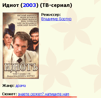 Кстати, у них такого рода проблемы постоянно. Как-то они Нила Маршалла ("Спуск") перепутали с Майклом Бассетом ("На страже смерти"), я им написал комментарий, к их чести, заведомую чушь потом убрали... вместе с комментарием... ))
