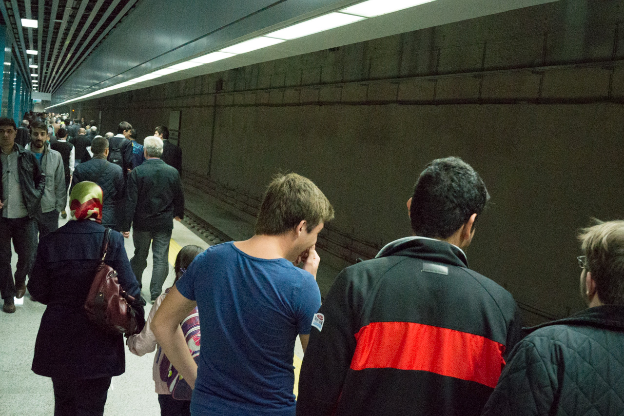 А по фотографиям складывается впечатление, что народу на станциях вообще нет. А в поездах тем более. Попробуй в питерском метро в час пик поснимать 😄