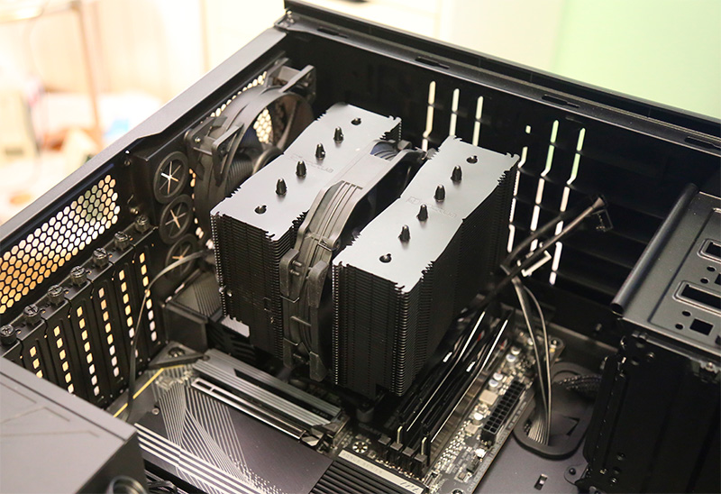 Потом по старой памяти купил Noctua NH-D15 Chromax Black - и обломался по полной программе: радиатор кулера упирался в модуль памяти, которая тоже имеет свой радиатор, и крышка корпуса не закрывалась. А поставить кулер как-то по-другому - нельзя было по определению.