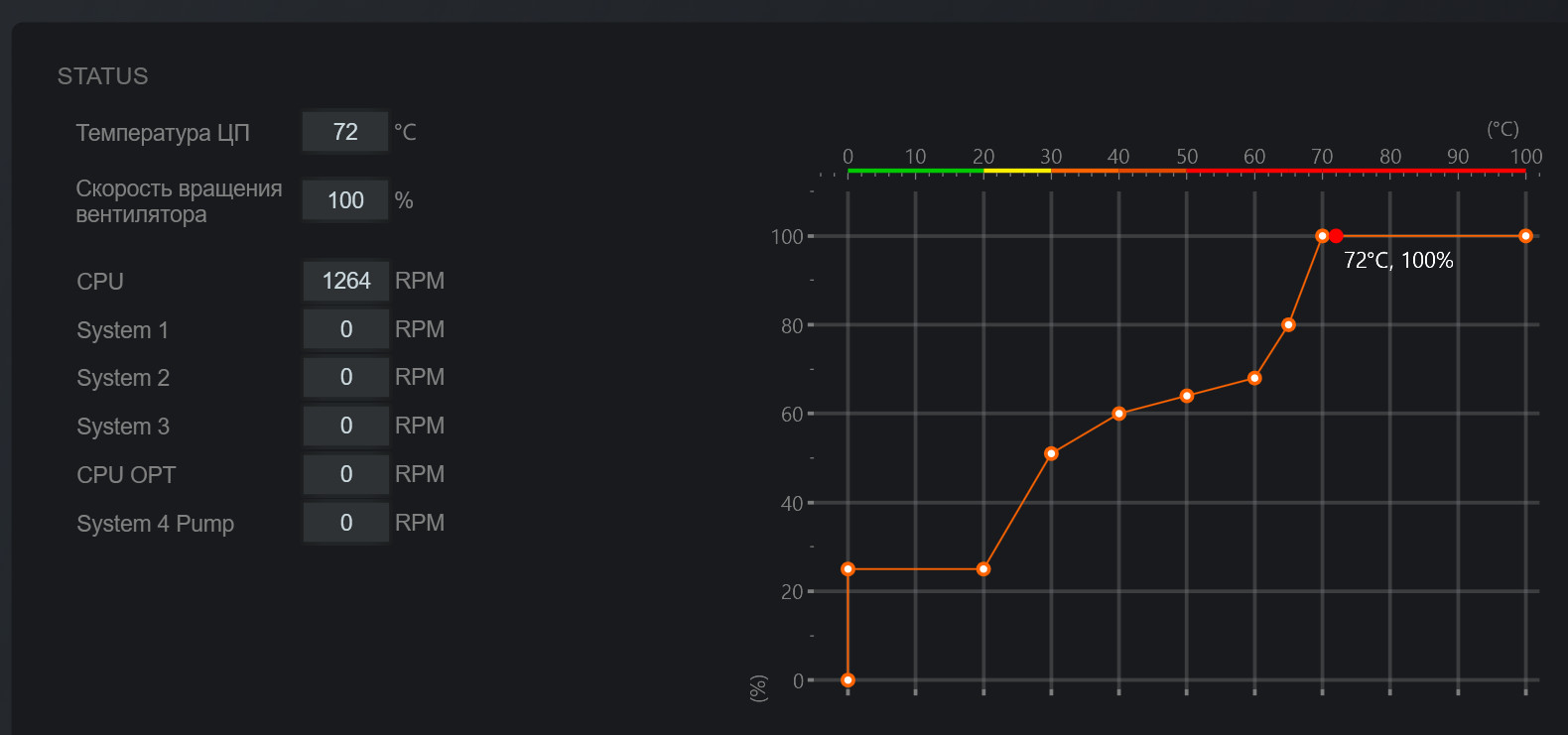 Также я копался с настройками в UEFI - там есть раздел с регулировкой работы кулеров. И тоже не помогло.