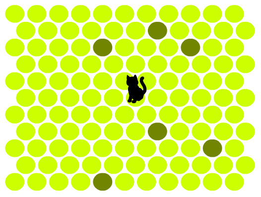 Интересно, можно ли его поймать "в чистом поле", а если нет, то какое минимальное количество темных кружков гарантирует победу?