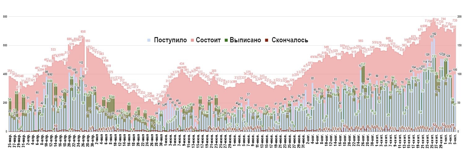 Является то, скольким сегодня нужна реанимация именно в результате него, а рядом - сколько это составляет процентов от общих мест в реанимации и сколько это составляет процентов от нуждающихся в реанимации по другим причинам.