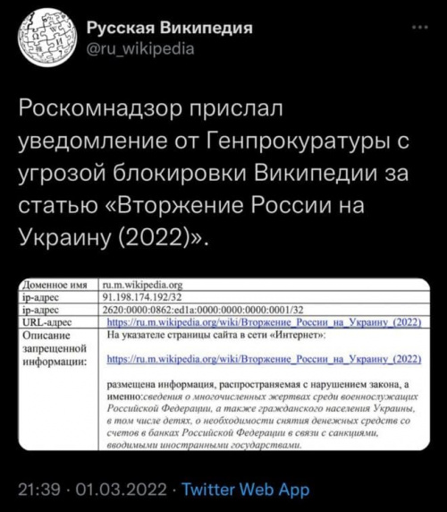 Роскомнадзор хочет заблокировать "Википедию". Похоже, там совсем истерика.