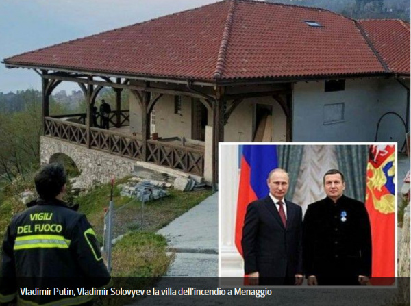 Неизвестные утром 6 апреля пытались поджечь виллу российского телеведущего Владимира Соловьева в итальянском городе Комо. Для этого они использовали зажженные покрышки.
