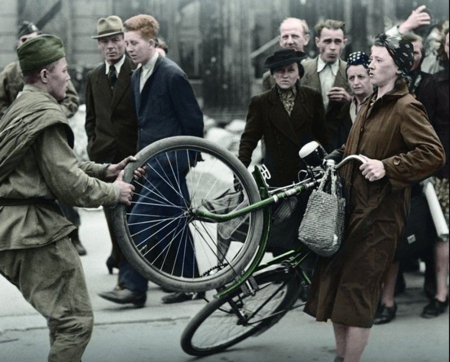Это была история, рассказанная одной женщиной, которую обокрали солдаты РФ. Эта женщина шла по улице домой и увидела этот самый танк (что на снимке), который стоял недалеко от её дома. Она узнала картонную коробку, лежащую на броне танка. Это была её новая газовая колонка (или что-то такое из бытовой техники, я сейчас не помню уже), а также она узнала свой плед, который хранился на её даче.