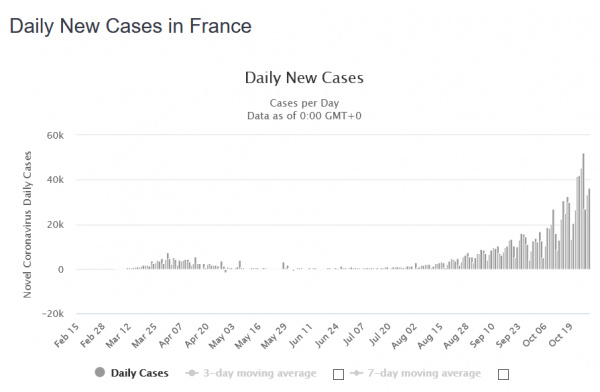 Тут Францию "упрекают" за введение мер при средненедельном уровне смертности 260 погибших в день (в Германии ещё меньше, 55). В США этот уровень уже давно не опускается ниже 700-800, даже на минимуме в июле было около 500.