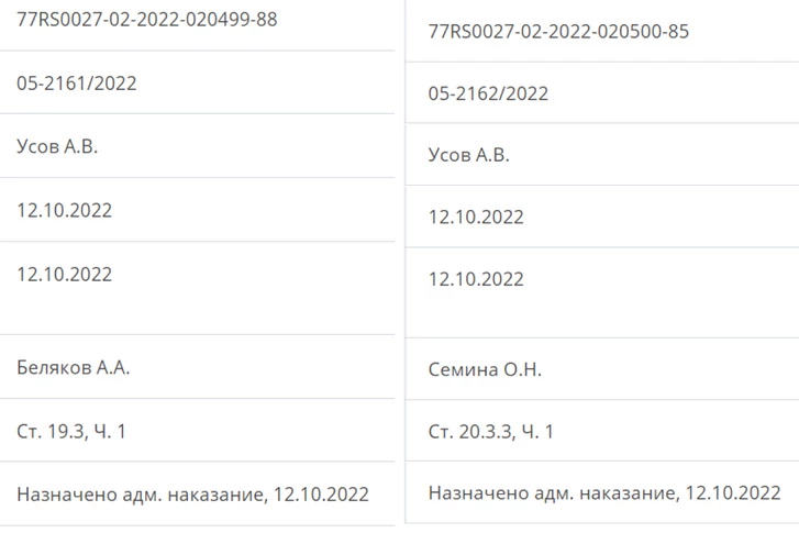 Согласно картотеке, протоколы на Усова составили за неповиновение представителю власти и действия, направленные на дискредитацию российской армии. Решения по обоим материалам суд вынес сегодня, 12 октября.