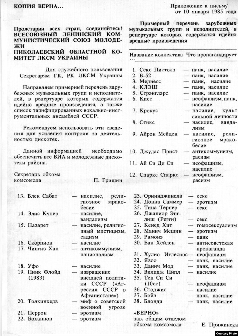 На каком основании интересно. Есть законодательные документы? Типа список запрещенной к прослушиванию музыки?