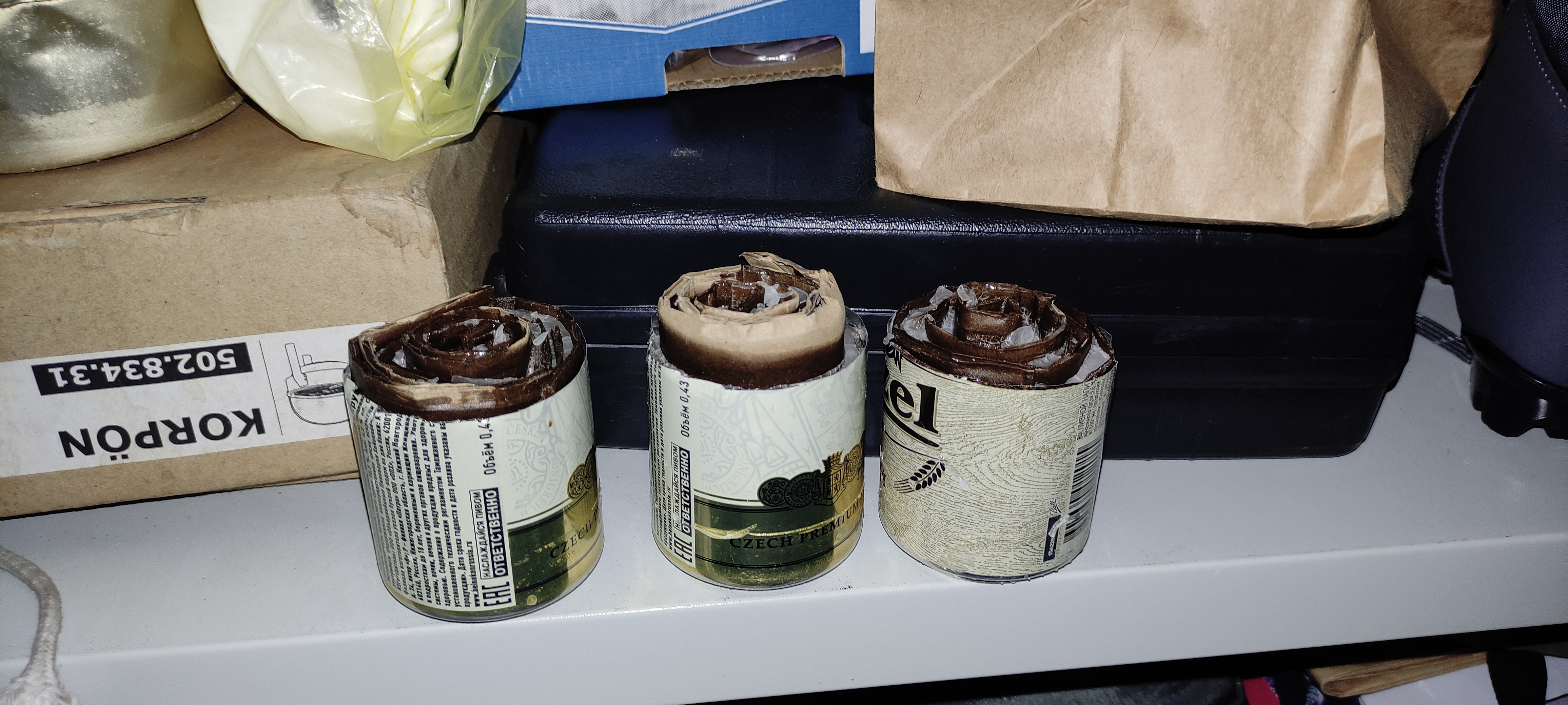 И вот тут баночка парафина с фитилём хоть чуть согревает. Ещё дрон с ВОГом на огонёк может прилететь.