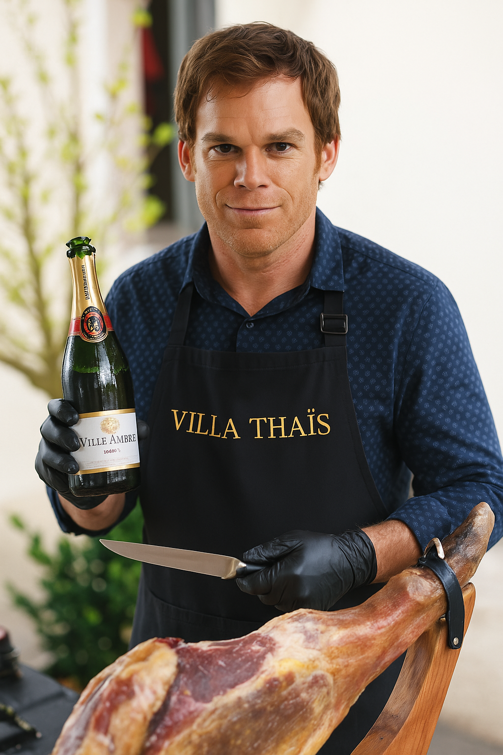В руке - обязательная бутылка "Вдовы Амбал"
