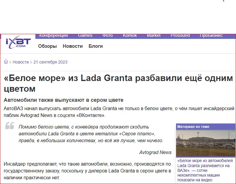 Помимо белого цвета, с конвейера продолжают сходить автомобили Lada Granta в цвете металлик «Серое плато», правда, в небольших количествах, но всё же лучше, чем ничего.