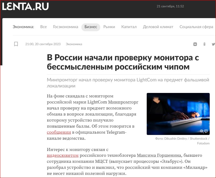 Блогер Максим Горшенин купил «полностью российский» монитор LightCom