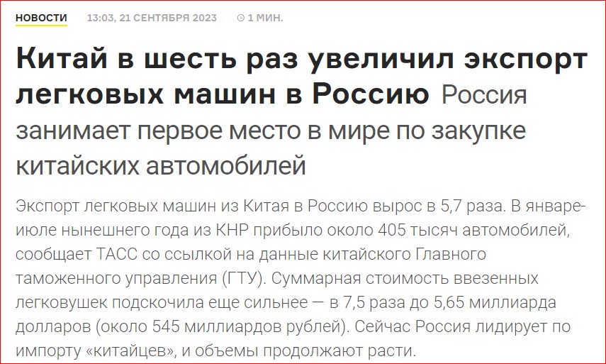 Но мне бы не хотелось, чтобы китайские автопром стал "главным в мире", поэтому хорошо, что они завязываются с РФским автопромом. ИМХО, конечно.