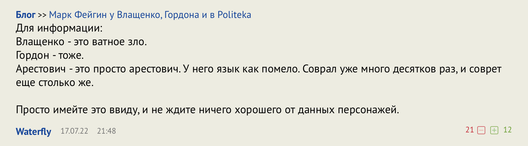 Писал что арестович пздун, еще когда это не было мейнстримом (2 года назад) 😄))