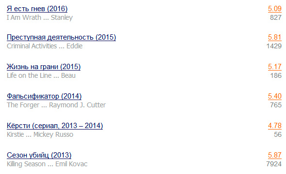 Даже на boxofficemojo значится последним фильмом только "Сезон охоты". То есть эти ленты с точки зрения коммерческих результатов даже и внимания не заслуживают.