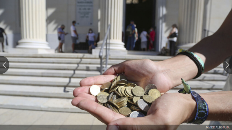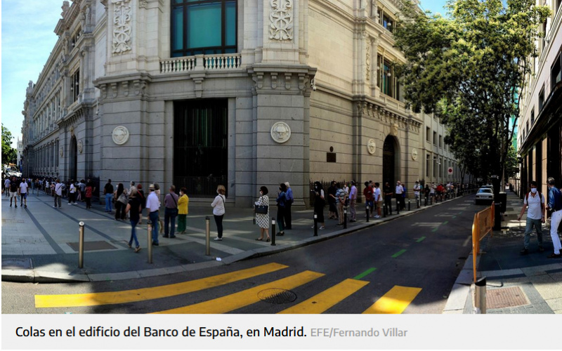 Средняя сумма обмена, как пишут в статье, 150-170 евро. В очереди, в основном, пожилые люди, однако есть и достаточно молодые. Которых, наверное, отправили менять песеты их бабушки-дедушки или родители.