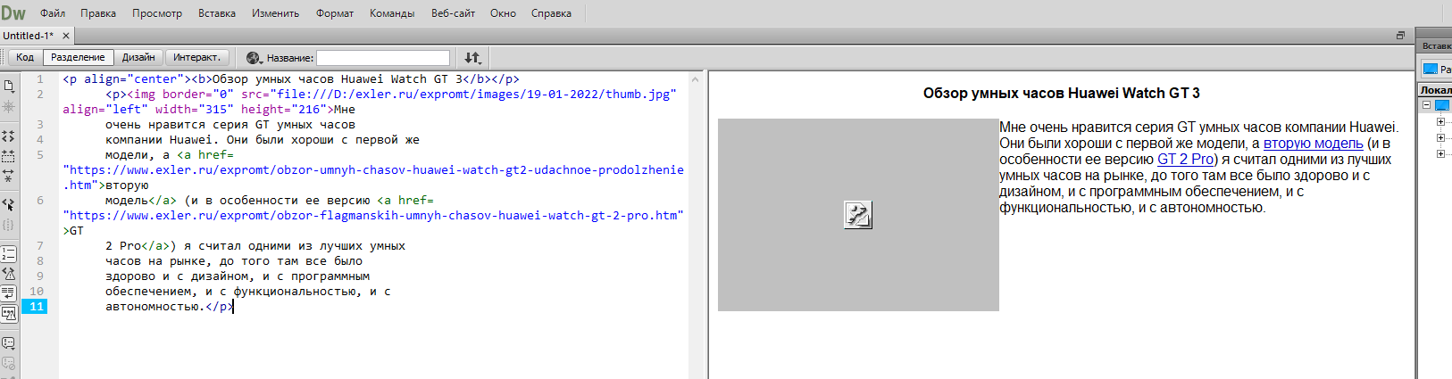 Вот тут очень важно: создаваемый код должен быть ПРОСТЕЙШИЙ. Чтобы он потом нормально вверстывался под все наши стили и не создавал неожиданных проблем. FrontPage очень нравится тем, что он по умолчанию генерирует код вот такого вида: