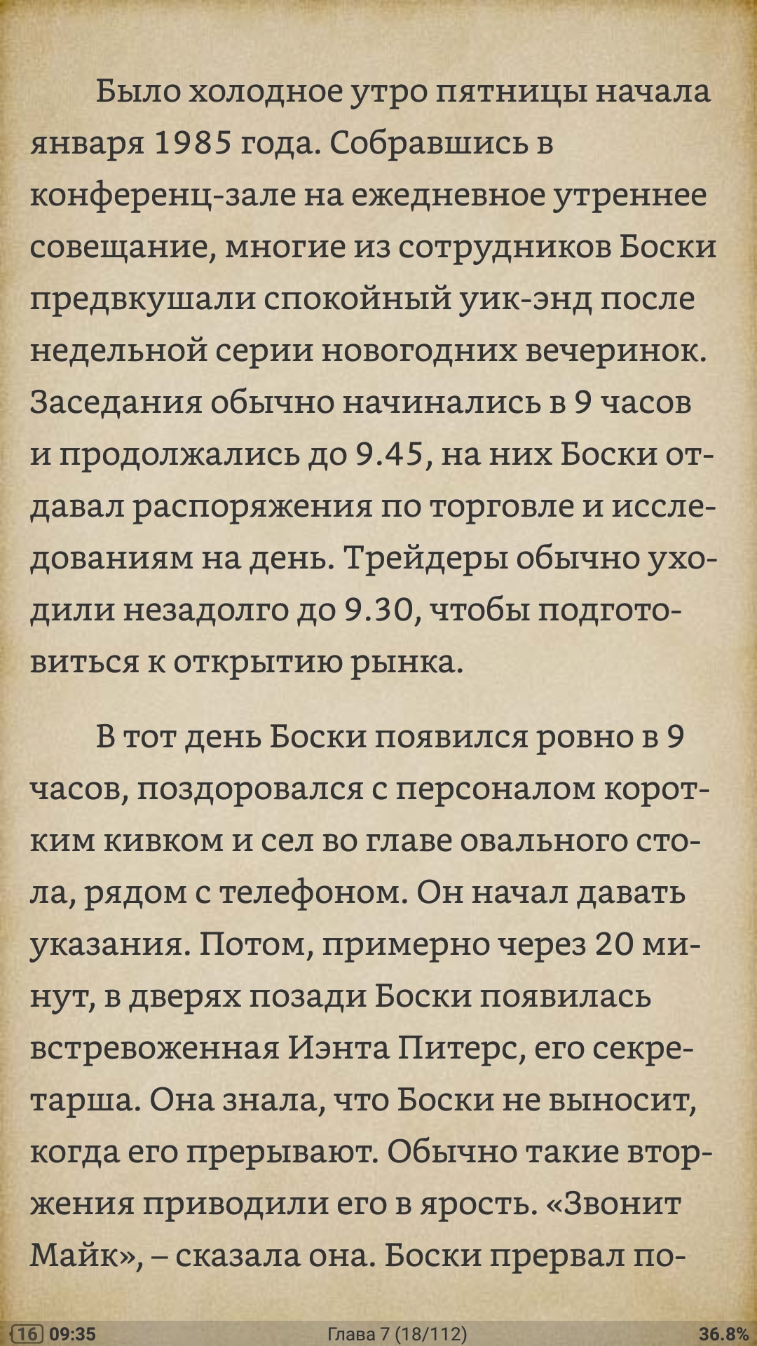 Общий вид. Я настроил свой шрифт, подложку. Форматирование в fb2 задается простым указанием на языке css в одном месте, иногда можно с этим поиграться, если нужно что-то иначе выделить.