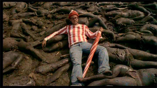 В "Апокалипсисе" есть одно странное "пасхальное яйцо". Вот в этой лицензионной версии на DVD. Я делал скриншоты для рецензии и прокручивал в замедленной съемке некоторые эпизоды. В сцене на поле с трупами вдруг мелькнуло какое-то яркое пятно. Прокрутил покадрово и офигел! Когда смотришь на скорости - внимания не обращаешь вообще, потому что это только один кадр. Но при воспроизведении покадрово он виден во всей красе. Клянусь, это не хохма, любой может проверить, остановив данный DVD на кадре вот здесь - 01:27:44.