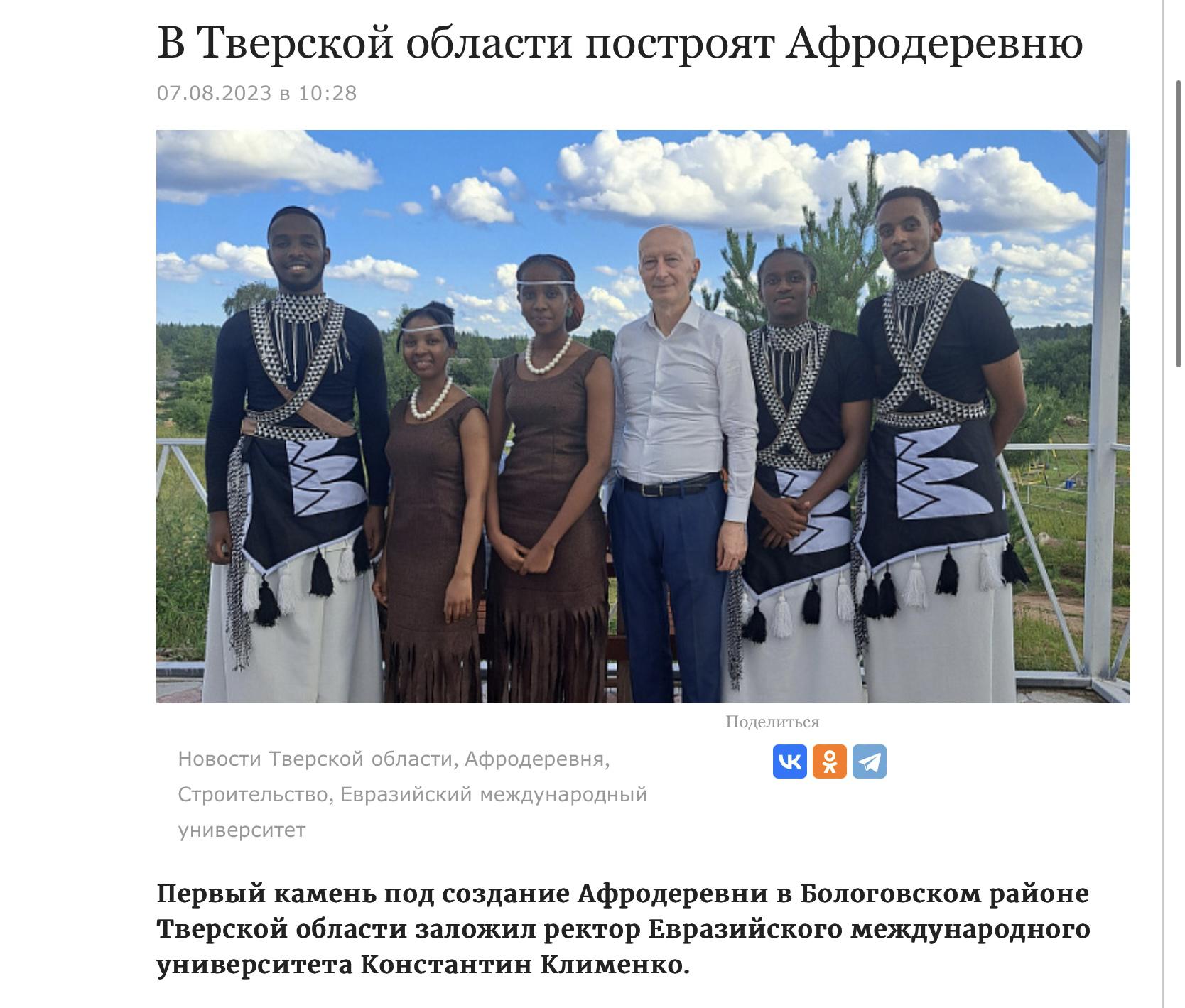 Ну что, раз Путин дал команду со страшной силой дружить с Африкой (больше, в общем-то, ему дружить и не с кем), значит, надо обязательно замутить какую-нибудь смешную показуху. Замутили: вместо потемкинской деревни, которую они обычно строят при первой возможности, решили сделать - только не ржите - афродеревню. Да-да. Типа как африканерами будут заселять - это потомки голландцев (в основном), а также немцев и французов, которые в свое время приехали в ЮАР.