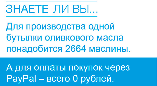 Какой потрясающий креатив от PayPal. Интересно, они гению, придумавшему это дело, еще и деньги заплатили? Или ограничились бутылкой оливкового масла в 2664 маслины?