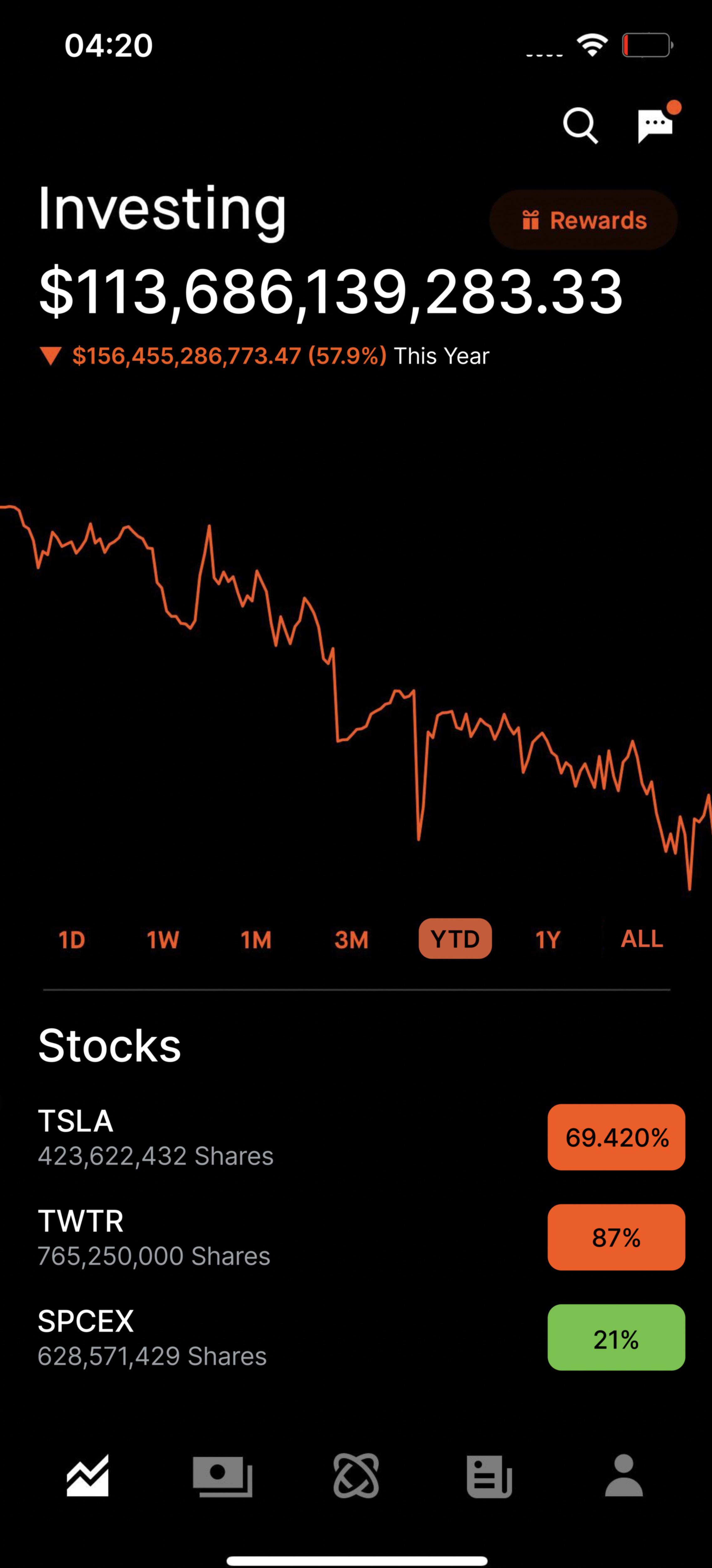 Помимо падения рыночной стоимости Tesla, чистая стоимость компании Маска уменьшилась с 338 млрд долларов год назад до 139 млрд долларов сегодня. Однако влияние падения стоимости на Маска - это не просто "стало меньше денег". Возможность Маска полагаться на акции Tesla для привлечения капитала быстро ухудшилась по мере падения цены акций.