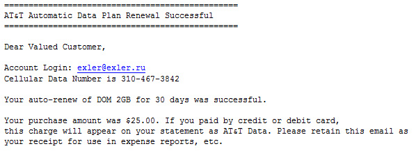 А потом, просматривая папку спама, вдруг совершенно случайно обнаружил вот такое письмо о продлении плана. Они приходили, конечно, просто в спам валились. И там была волшебная ссылка на мой кабинет. Логин-пароль в менеджере не хранились, но в конце концов подошел маленький парольчик в 16 знаков, который я обычно использую в не особенно важных подписках. И случилось чудо - я отписался! Теперь больше не буду кормить AT&T! ("Как бы не разорились теперь ребята", - заметил циничный кот Бублик.)