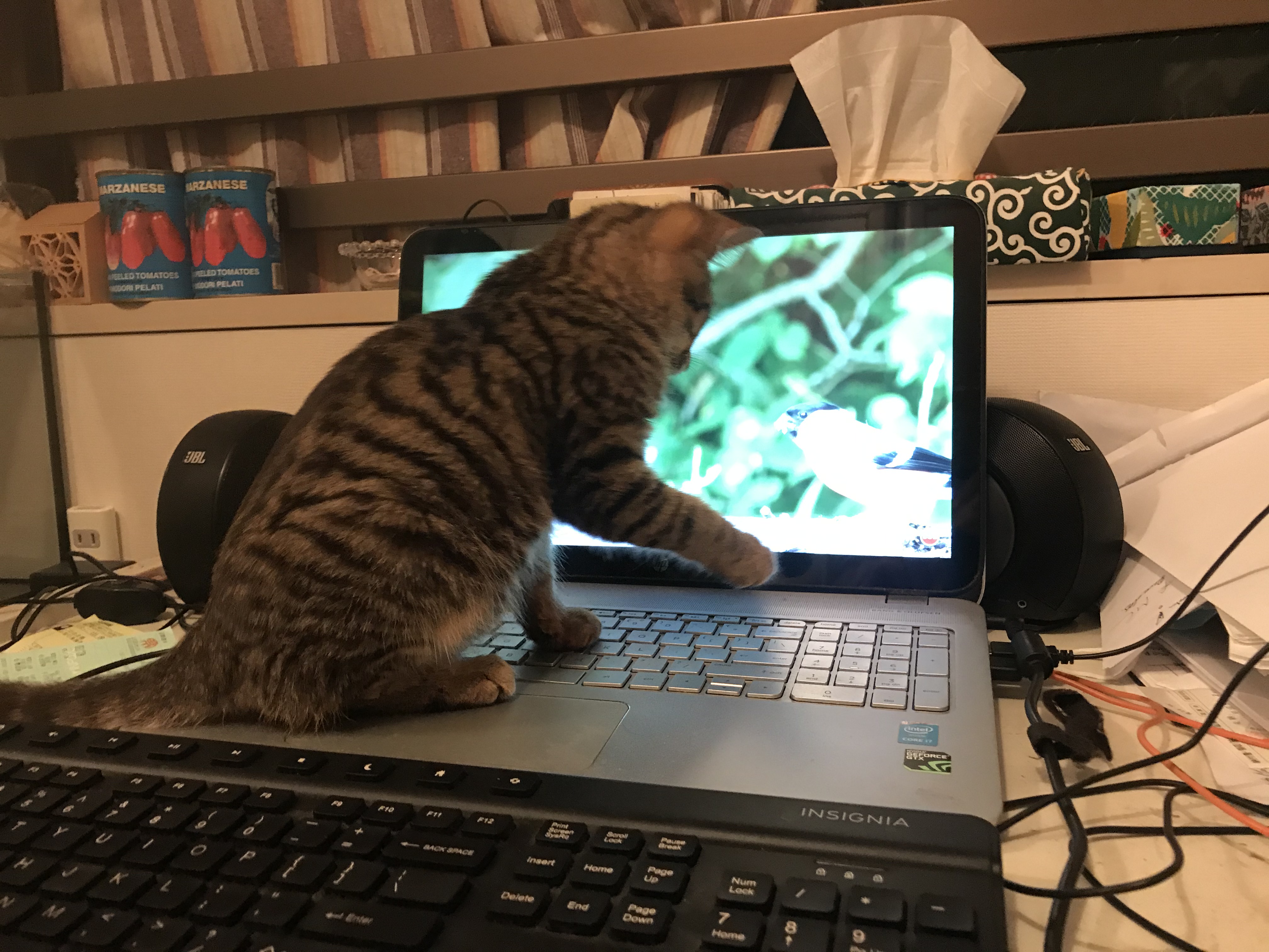 У нас только что появился котенок (знакомый нашел, но у него уже три кошки, так что поделился). Пока работе не мешает, даже помогает.