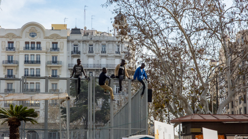 Нелегальные иммигранты. Это тоже фигуры - инсталляция такая. По ее поводу Ассоциация нелегальных иммигрантов из Африки (в Валенсии есть такая) заявила свой решительный протест.
