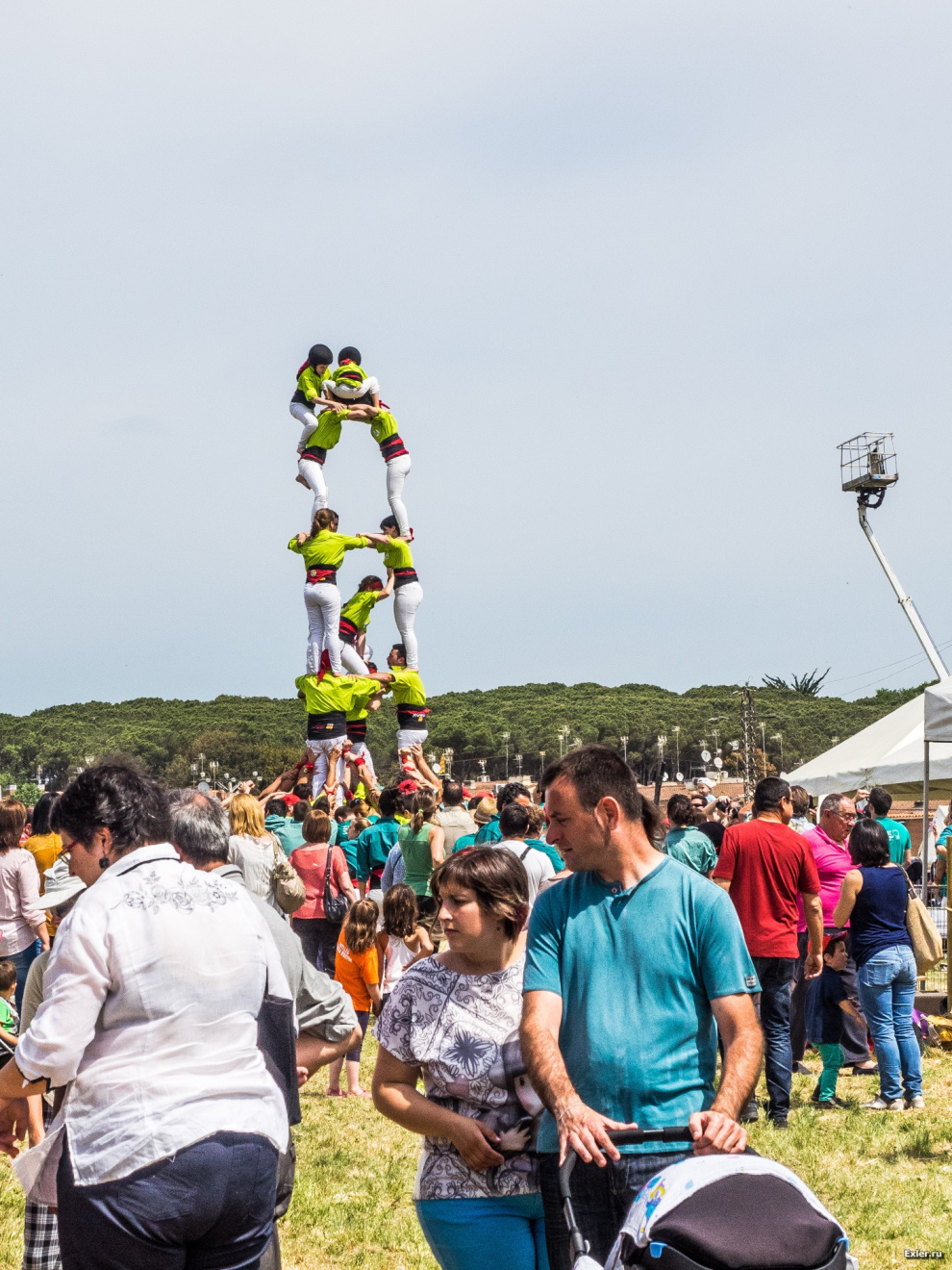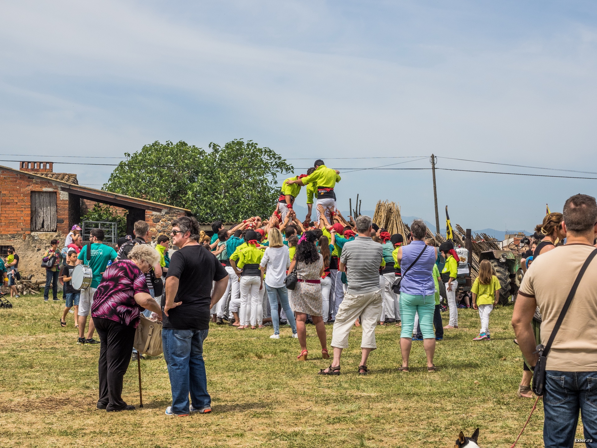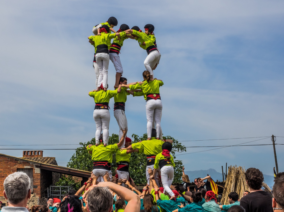 Ну и, разумеется, очередная команда из очередного города (или школы - я точно не знаю) делает знаменитую каталанскую "живую пирамиду". Это развлечение, без которого не обходится ни один праздник в Каталонии. Да и вообще, как только где-нибудь соберется пара десятков каталанов, они или играют в футбол, или строят пирамиду. Пирамида, разумеется, также является символом борьбы Каталонии за независимость.