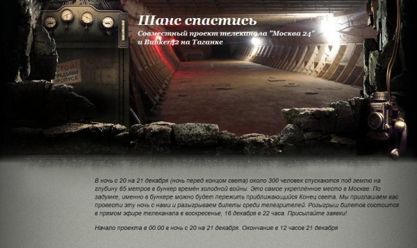 Upd: там еще и телемост будет с подобными бункерами по всему миру...