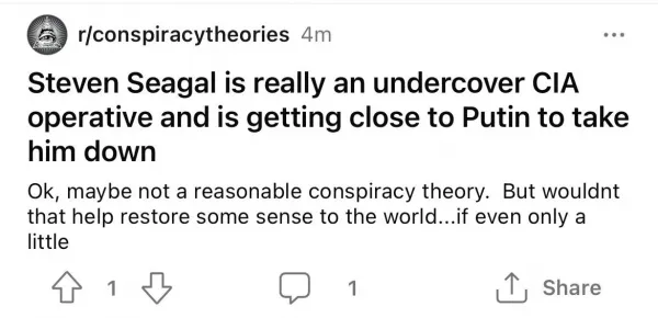 Стивен Сигал на самом деле работает оперативником ЦРУ и подбирается к Путину, чтобы