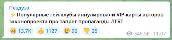 «Уже своим существованием гей-клубы есть ничто иное, как пропаганда нетрадиционных сексуальных отношений, мы же это тоже понимаем. Пусть люди, которые предпочитают однополые отношения, занимаются этим не массово в гей-клубах комфортных, которые привлекают к себе внимание. Пусть они занимаются этим у себя дома в спальне, это нормально. Никто не собирается отлавливать геев, запрещать им заниматься утехами, которые они себе позволяют», — заявила депутат.