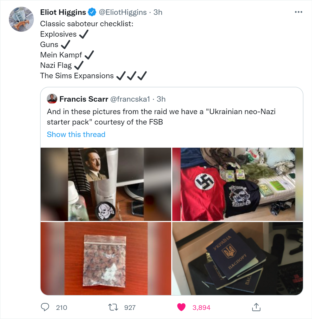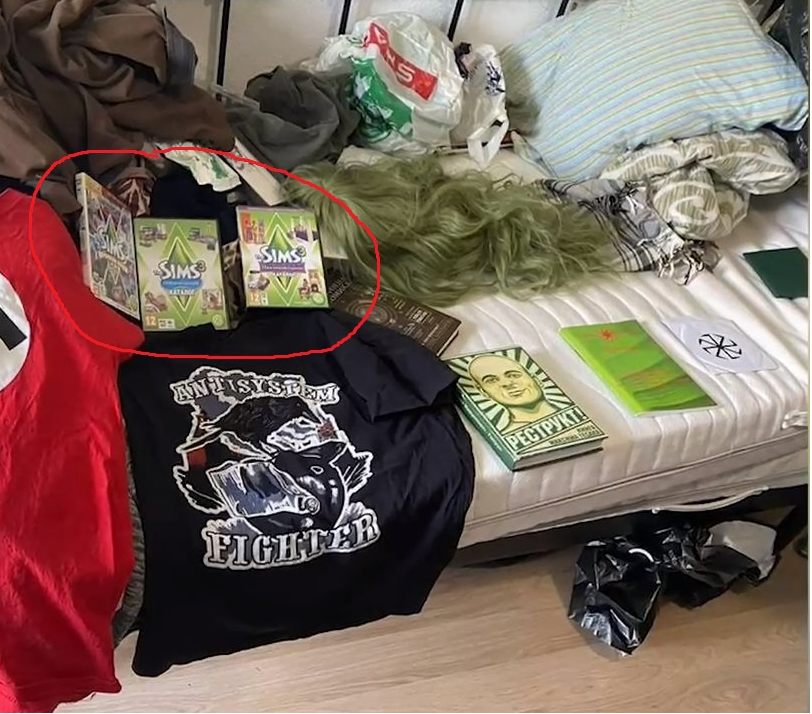 Украинский нацист с коловратом и книгой Тесака (там среди симсов лежат) - это как депутат РФ с флагом США примерно..