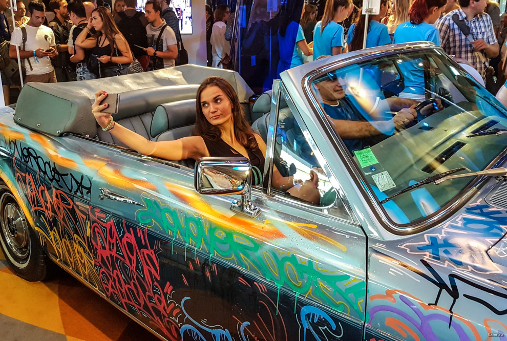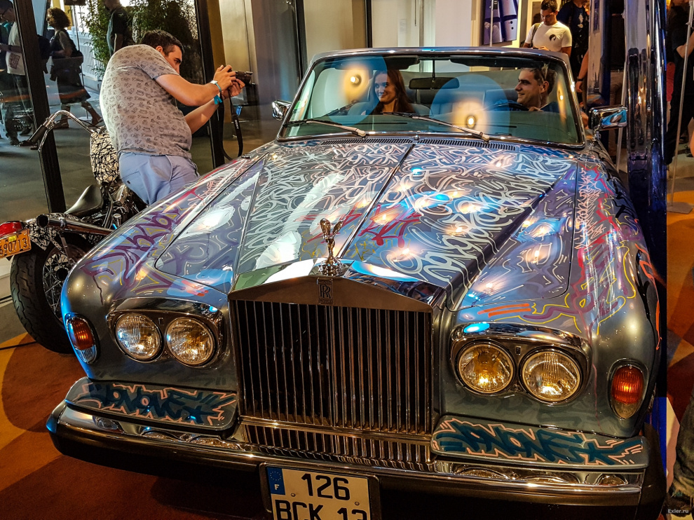 В холле для вящей радости публики были выставлены какие-то экзотические автомобиль и мотоцикл, разрисованные самым психоделическим образом.