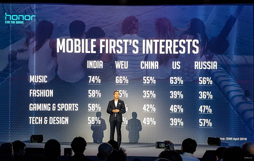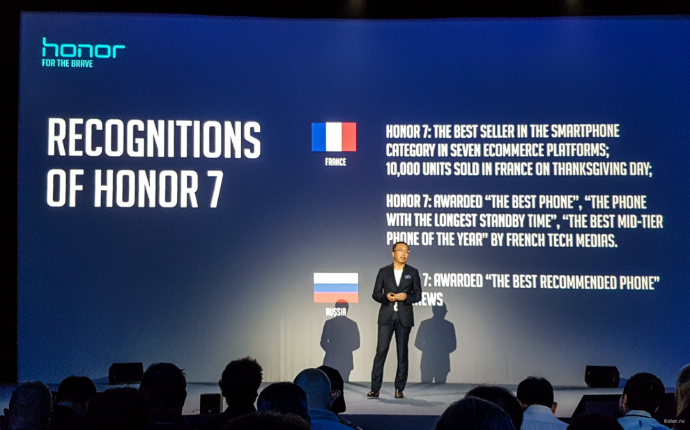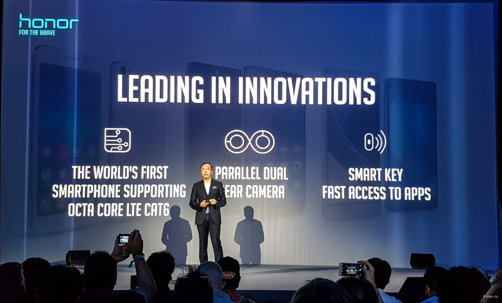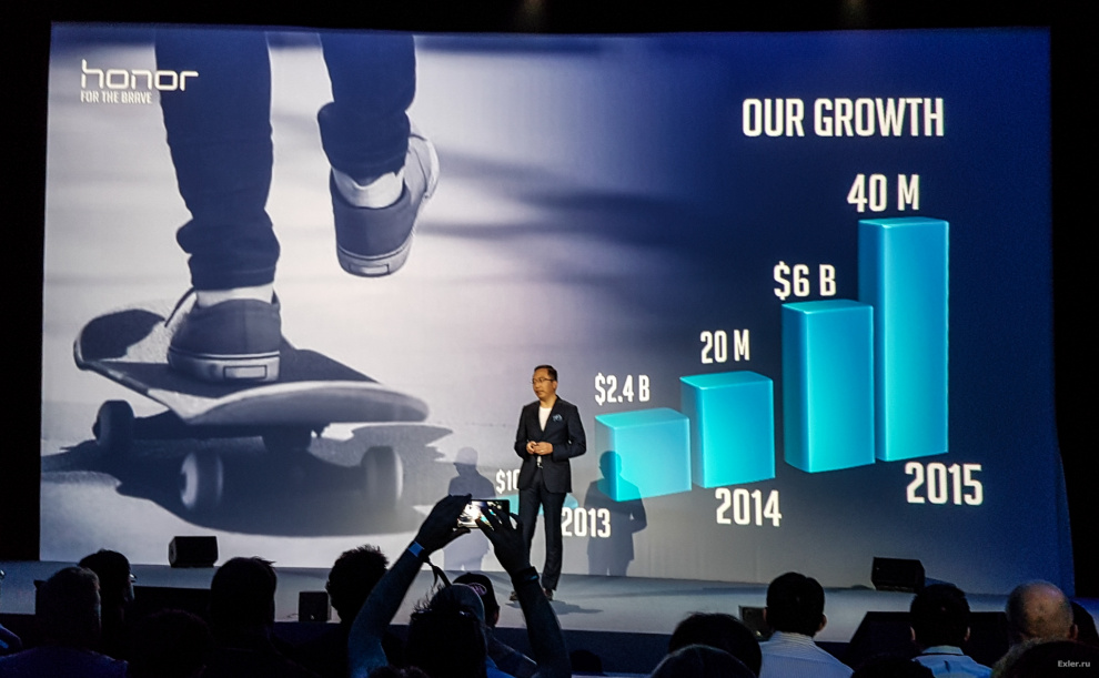 Джордж привел некоторую статистику продаж бренда Honor, который появился в 2013 году как подразделение компании Huawei. В 2014 году было продано 20 миллионов смартфонов Honor, в 2015 - уже 40 миллионов. И сейчас Honor продвигается уже как совершенно самостоятельный бренд, хотя его пуповинная связь с Huawei для экспертов и журналистов очевидна.