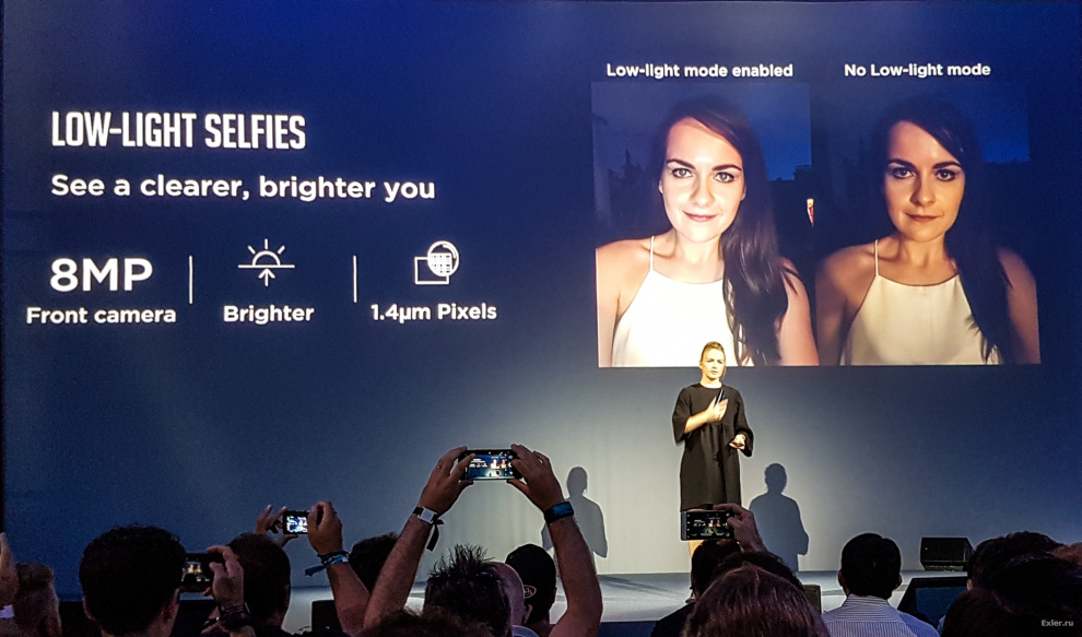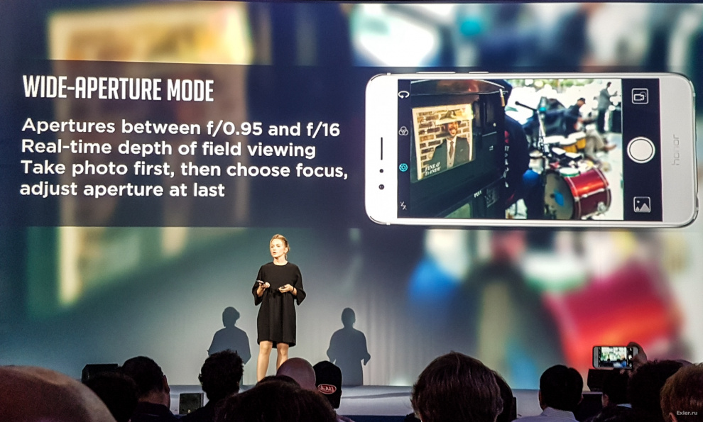 Она уже представляла непосредственно Honor 8. Рассказывала о подходе к дизайну - действительно впечатляющему, особенно у варианта цвета "синий сапфир". Нам рассказали, что в Honor оказались несколько не готовы к очень высокому спросу именно на данную расцветку, поэтому они сейчас активно наращивают производство "синего сапфира", потому что спрос пока опережает предложение.