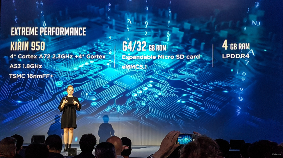 Платформа серьезная: процессор Kirin 950, 4 Гб оперативки и 32 или 64 Гб встроенной памяти.